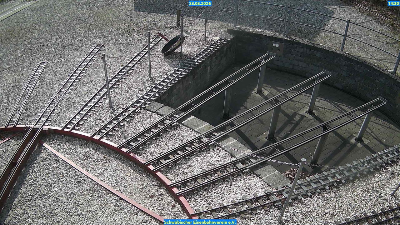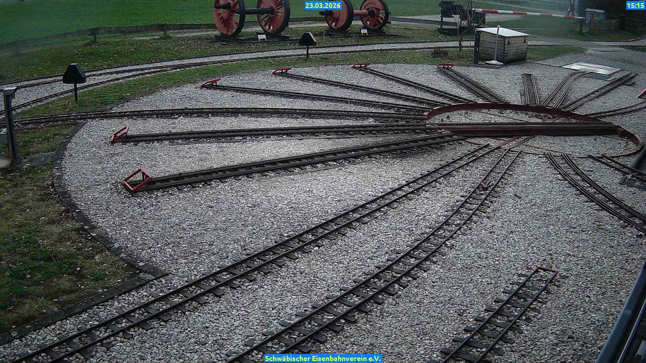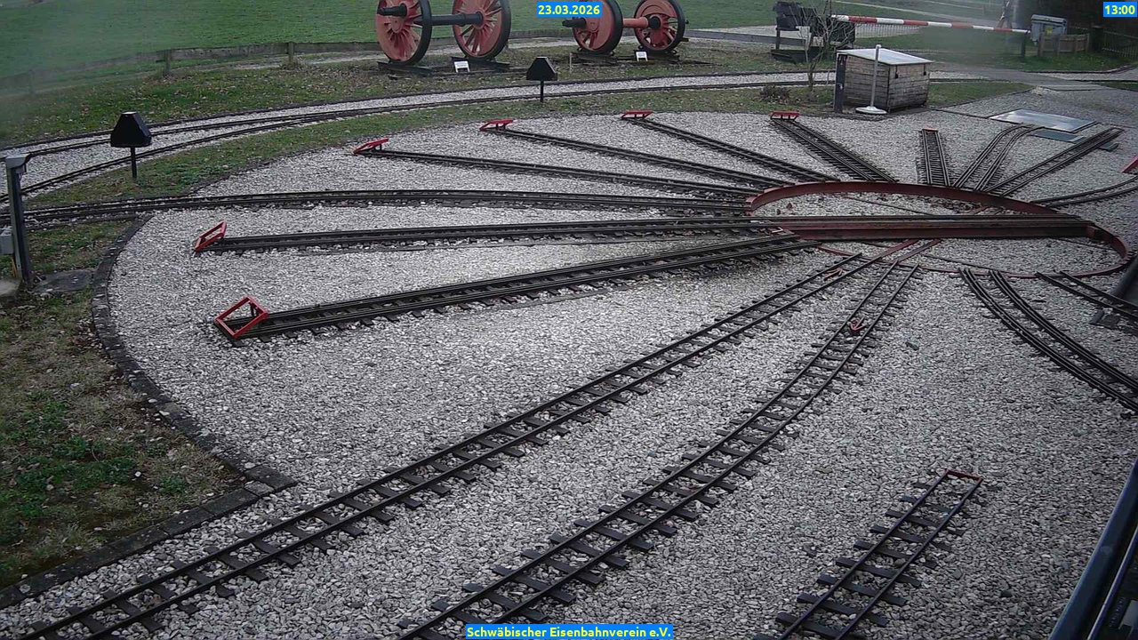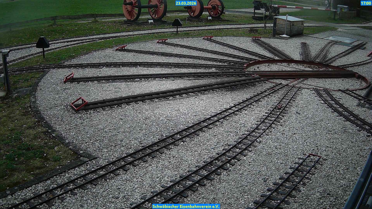 Webcam Bilder vom23.03.2026 Aktuelle Bilder: Bahnhof 1 Drehscheibe Bahnhof 2 Anheizgrube 23.03.2026 Bahnhof 1DrehscheibeBahnhof 2Anheizgrube09 Uhr 10 Uhr 11 Uhr 12 Uhr 13 Uhr 14 Uhr 15 Uhr 16 Uhr 17 Uhr Bahnhof 1 09 Uhr Drehscheibe 09 Uhr Bahnhof 2 09 Uhr Anheizgrube 09 Uhr Bahnhof 1 10 Uhr Drehscheibe 10 Uhr Bahnhof 2 10 Uhr Anheizgrube 10 Uhr Bahnhof 1 11 Uhr Drehscheibe 11 Uhr Bahnhof 2 11 Uhr Anheizgrube 11 Uhr Bahnhof 1 12 Uhr Drehscheibe 12 Uhr Bahnhof 2 12 Uhr Anheizgrube 12 Uhr Bahnhof 1 13 Uhr Drehscheibe 13 Uhr Bahnhof 2 13 Uhr Anheizgrube 13 Uhr Bahnhof 1 14 Uhr Drehscheibe 14 Uhr Bahnhof 2 14 Uhr Anheizgrube 14 Uhr Bahnhof 1 15 Uhr Drehscheibe 15 Uhr Bahnhof 2 15 Uhr Anheizgrube 15 Uhr Bahnhof 1 16 Uhr Drehscheibe 16 Uhr Bahnhof 2 16 Uhr Anheizgrube 16 Uhr Bahnhof 1 17 Uhr Drehscheibe 17 Uhr Bahnhof 2 17 Uhr Anheizgrube 17 Uhr 4191 aufrufe / 0 heute