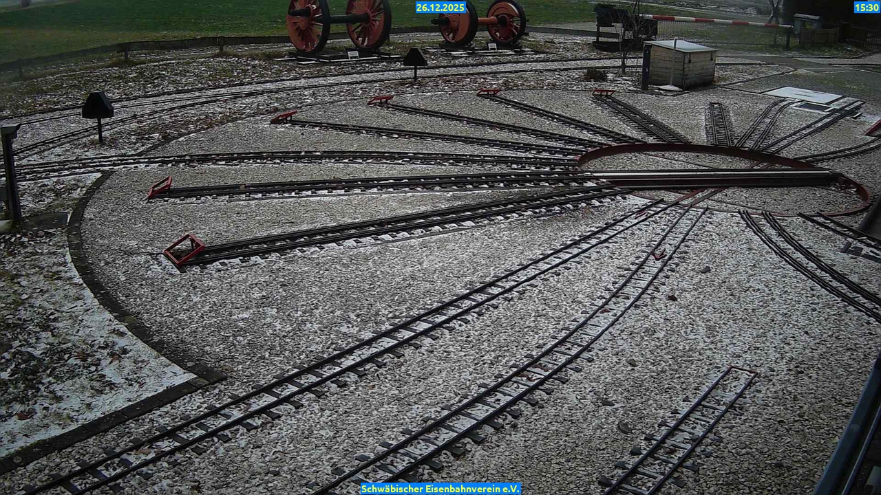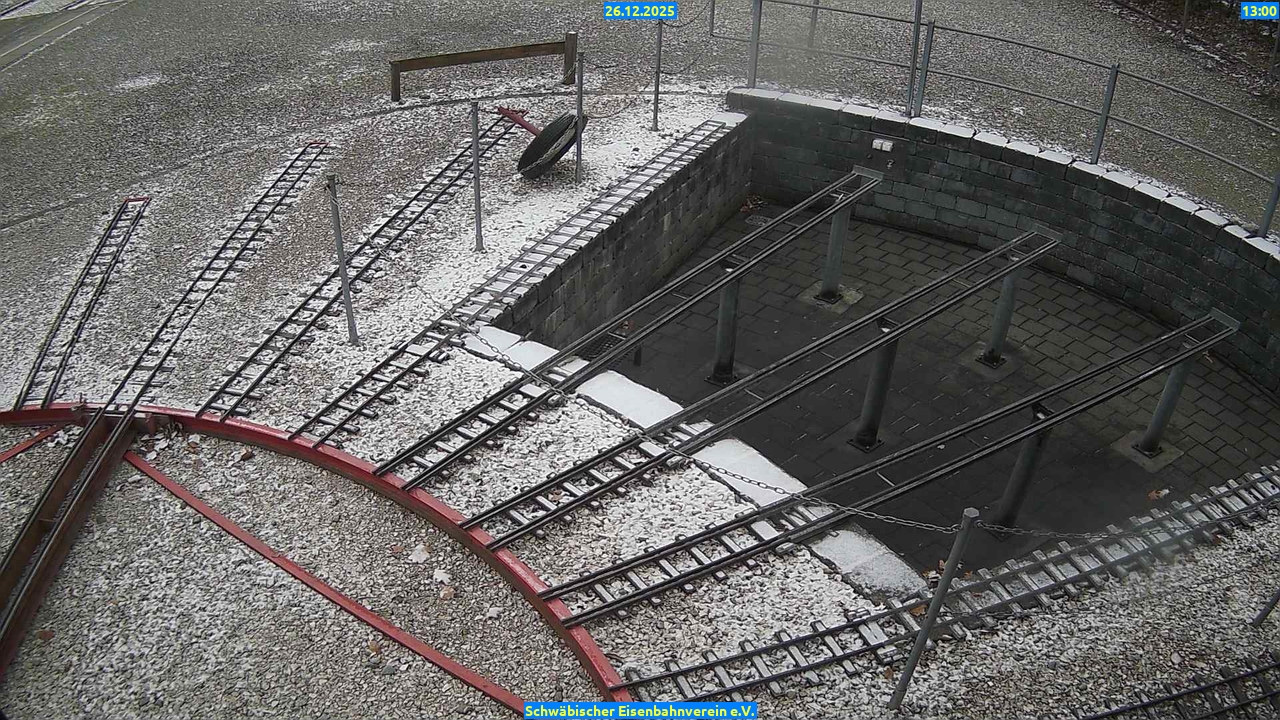 Webcam Bilder vom26.12.2025 Aktuelle Bilder: Bahnhof 1 Drehscheibe Bahnhof 2 Anheizgrube 26.12.2025 Bahnhof 1DrehscheibeBahnhof 2Anheizgrube09 Uhr 10 Uhr 11 Uhr 12 Uhr 13 Uhr 14 Uhr 15 Uhr 16 Uhr 17 Uhr Bahnhof 1 09 Uhr Drehscheibe 09 Uhr Bahnhof 2 09 Uhr Anheizgrube 09 Uhr Bahnhof 1 10 Uhr Drehscheibe 10 Uhr Bahnhof 2 10 Uhr Anheizgrube 10 Uhr Bahnhof 1 11 Uhr Drehscheibe 11 Uhr Bahnhof 2 11 Uhr Anheizgrube 11 Uhr Bahnhof 1 12 Uhr Drehscheibe 12 Uhr Bahnhof 2 12 Uhr Anheizgrube 12 Uhr Bahnhof 1 13 Uhr Drehscheibe 13 Uhr Bahnhof 2 13 Uhr Anheizgrube 13 Uhr Bahnhof 1 14 Uhr Drehscheibe 14 Uhr Bahnhof 2 14 Uhr Anheizgrube 14 Uhr Bahnhof 1 15 Uhr Drehscheibe 15 Uhr Bahnhof 2 15 Uhr Anheizgrube 15 Uhr Bahnhof 1 16 Uhr Drehscheibe 16 Uhr Bahnhof 2 16 Uhr Anheizgrube 16 Uhr Bahnhof 1 17 Uhr Drehscheibe 17 Uhr Bahnhof 2 17 Uhr Anheizgrube 17 Uhr 3880 aufrufe / 0 heute