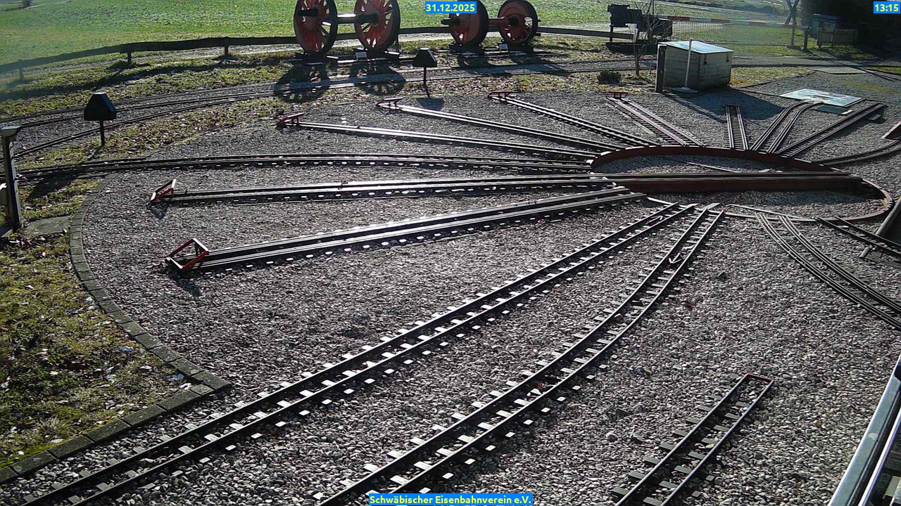 Webcam Bilder vom31.12.2025 Aktuelle Bilder: Bahnhof 1 Drehscheibe Bahnhof 2 Anheizgrube 31.12.2025 Bahnhof 1DrehscheibeBahnhof 2Anheizgrube09 Uhr 10 Uhr 11 Uhr 12 Uhr 13 Uhr 14 Uhr 15 Uhr 16 Uhr 17 Uhr Bahnhof 1 09 Uhr Drehscheibe 09 Uhr Bahnhof 2 09 Uhr Anheizgrube 09 Uhr Bahnhof 1 10 Uhr Drehscheibe 10 Uhr Bahnhof 2 10 Uhr Anheizgrube 10 Uhr Bahnhof 1 11 Uhr Drehscheibe 11 Uhr Bahnhof 2 11 Uhr Anheizgrube 11 Uhr Bahnhof 1 12 Uhr Drehscheibe 12 Uhr Bahnhof 2 12 Uhr Anheizgrube 12 Uhr Bahnhof 1 13 Uhr Drehscheibe 13 Uhr Bahnhof 2 13 Uhr Anheizgrube 13 Uhr Bahnhof 1 14 Uhr Drehscheibe 14 Uhr Bahnhof 2 14 Uhr Anheizgrube 14 Uhr Bahnhof 1 15 Uhr Drehscheibe 15 Uhr Bahnhof 2 15 Uhr Anheizgrube 15 Uhr Bahnhof 1 16 Uhr Drehscheibe 16 Uhr Bahnhof 2 16 Uhr Anheizgrube 16 Uhr Bahnhof 1 17 Uhr Drehscheibe 17 Uhr Bahnhof 2 17 Uhr Anheizgrube 17 Uhr 3880 aufrufe / 0 heute